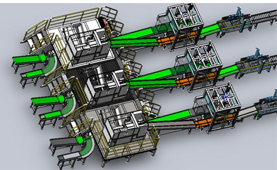 Two picker cells based on delta robots are integrated together to form a ring, which perfectly solves the picking and placing of stacked objects, and achieves high-efficiency production with a small footprint.